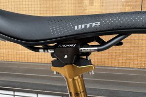 シート周りは先日発売されたばかりの座り心地に優れるWTB VOLT STAINLESSサドルにFoxRacingShox TRANSFER FSを組み合わせ、サドルのヤグラ部分には3段階にシート角度調整が出来るSWICH GRADE V2 EVOが取り付けてあります。