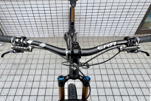 ハンドルとステムは、30ミリライズのRACEFACE ERA CARBONハンドルバーと、RACEFACE の新型ステムTURBIN SLステムをチョイス。