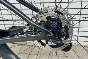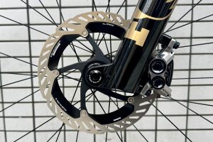 ブレーキは高いコントロール性能と制動力を併せ持つ:BR-M9220キャリパーと、冷却性能に優れる180㎜径ディスクローター:CL Rotor FREEZAの組み合わせ。