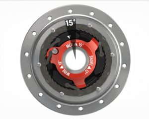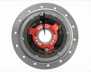 独自のフリーハブメカニズムは、フリーボディー内のピースを調整することにより、エンゲージメントデッドバンドの角度を、12°、15°、18°の3パターンに切り替えることで、バイクの性能やライディングスタイルに応じたフリートラベルを選択することが可能です。