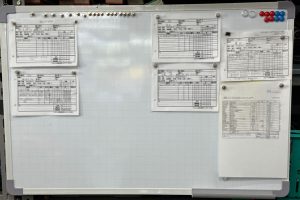 週末の天気に恵まれなかったこの10月、雨でご来店出来なかったお客さまも多く、その分メンテナンス作業が捗り、いつもは作業伝票で満杯の白板がご覧の様にスカスカになってしまいました。