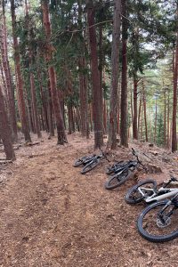 新たなMTBトレイルを造成されているのは三ツ峠の裾野に広がる森林で、造成を行っているのは、MTBを熟知されているメンバーを含む南都留森林組合および関係者の方々。