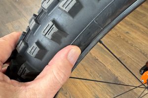 タイヤ素材が劣化するとタイヤのグリップ性能が著しく低下し、トレイルの根っ子や岩で、やたらと滑るようになります。